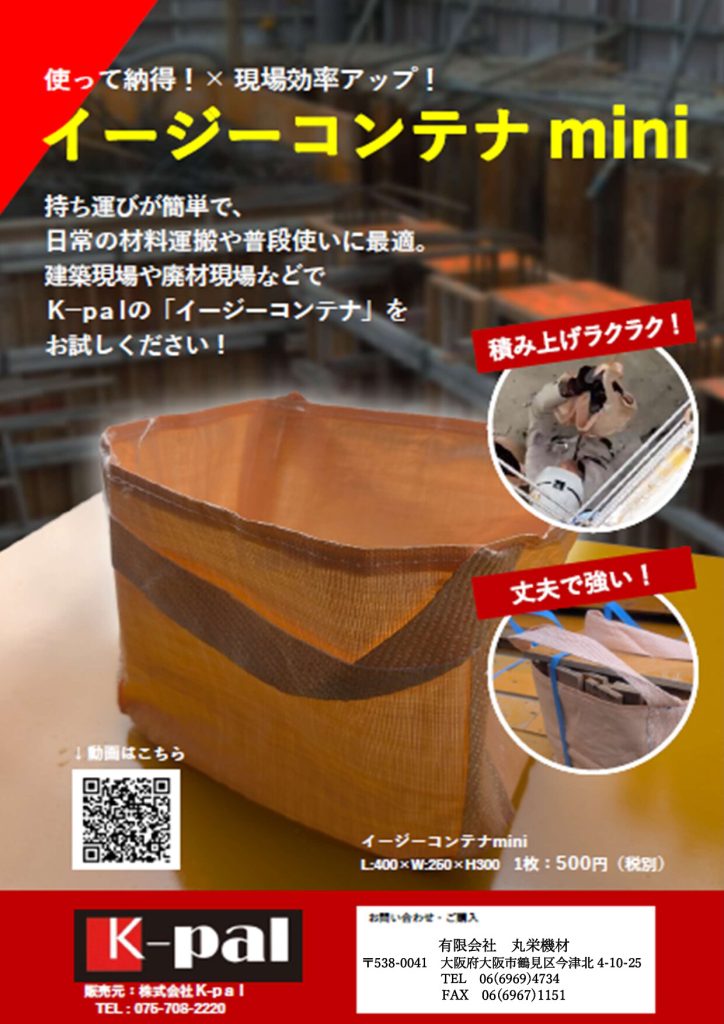 新製品のイージーコンテナminiは、持ち運びが簡単で、日常の材料運搬や普段使いに最適です。